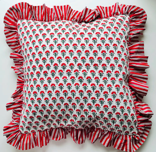 Block printed Quilted Cushion Cover | 20*20 inches -